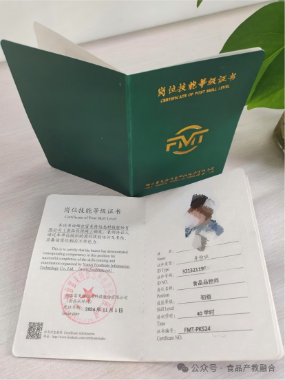 初级食品品控师证书样例